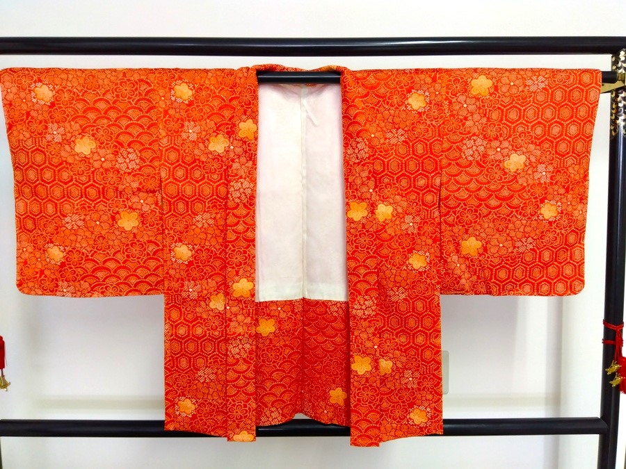 アンティーク 羽織り 絞り 橙色 オレンジ 桜と亀甲 羽織丈75.2cm 941 ggp