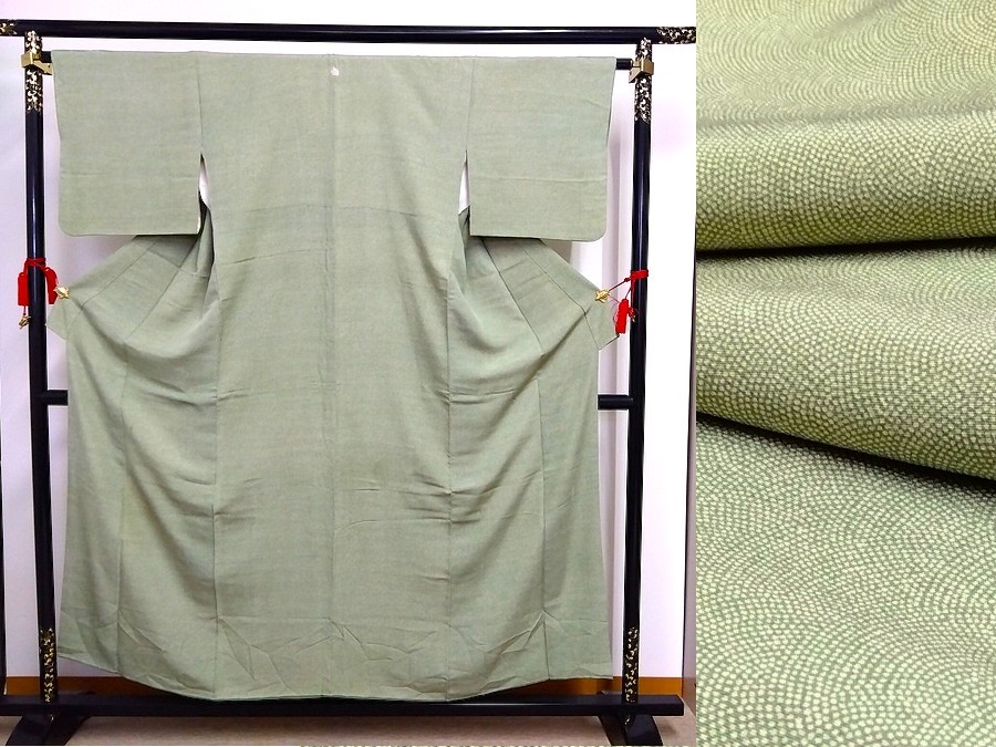 中古 リサイクル 正絹着物 袷 シルク 江戸小紋 鮫小紋 若草 着丈152.5cm 944 ggp