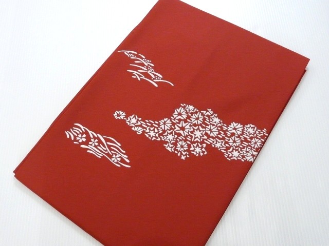 洗える名古屋帯 レンガ色 塩瀬系 草花 流れ柄 仕立上 011