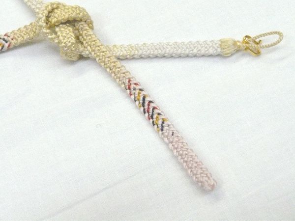 羽織紐 レディース 組紐 羽織カン付き 羽織ひも クリーム×白×ピンク 組紐 007