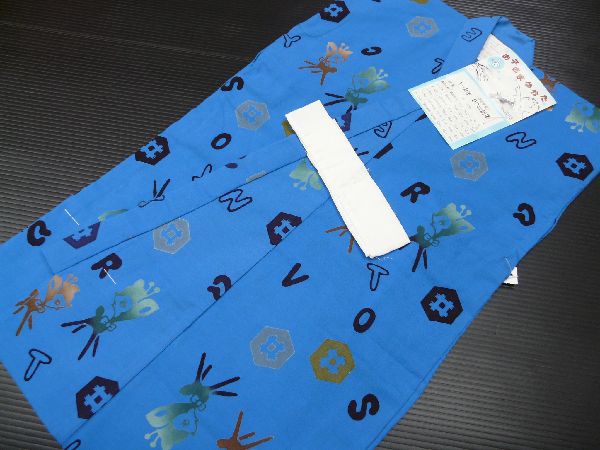 男の子 浴衣 90cm 単品 子供浴衣 青地にバンビ 1007 ggp