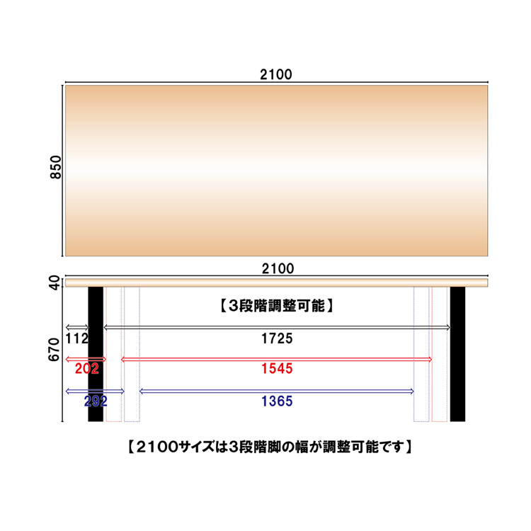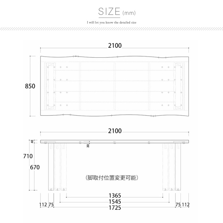 | サイズ (cm寸法) | 幅:210×奥行:85×高さ:71 天板厚:40mm(2枚貼り) |