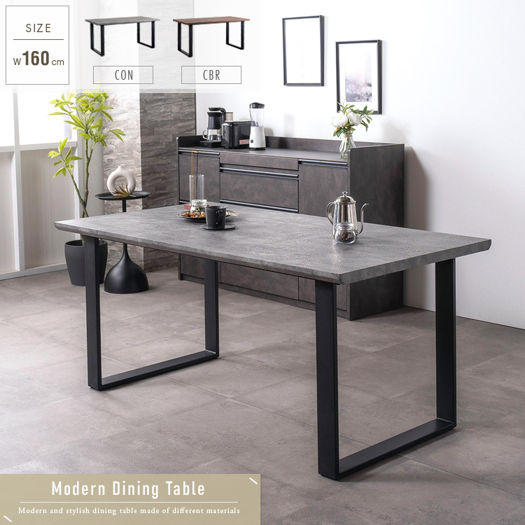 ダイニングテーブル 4人 160 グレー コンクリート モダン ブラウン アンティーク おしゃれ 4人掛け 単品 脚 スチール ブラック シンプル テーブル ダイニング 4人用