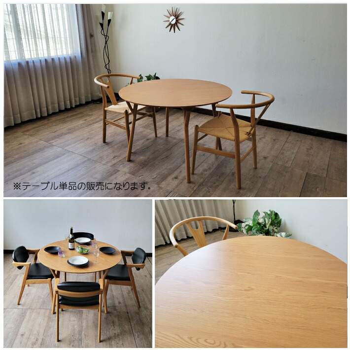 天然木オーク材の突板を使用したおしゃれな丸型テーブル。北欧ナチュラルなオーク色とアンティークテイストのウォールナット色の2色展開。