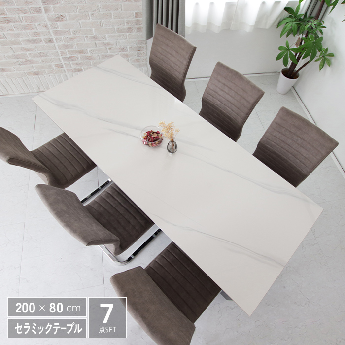 | サイズ (cm寸法) | 【テーブル】幅:200×奥行:80×高さ:72(セラミック天板厚:6mm) 【チェア】幅:44×奥行:58×高さ:93(座面高:42) |