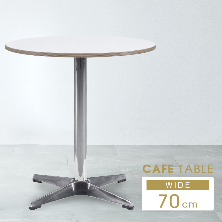 ラウンドテーブル ホワイト 白 70cm 円形 丸テーブル シルバー脚 軽量 軽い おしゃれ 1本脚 コンパクト カフェテーブル バーテーブル メラミン シンプル