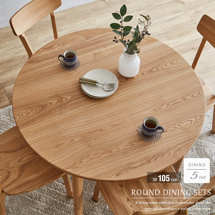 北欧風 ダイニングテーブルセット 円形 4人 5点セット 丸テーブル 105 丸 おしゃれ 天然木 タモ 無垢 北欧 ナチュラル ダイニングセット 4人掛け gkw