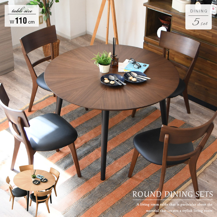 ダイニングテーブルセット 4人掛け 5点 丸テーブル 円形 110 おしゃれ ブラウン ナチュラル 北欧風 アンティーク風 4人用 モダン カフェ風 gkw