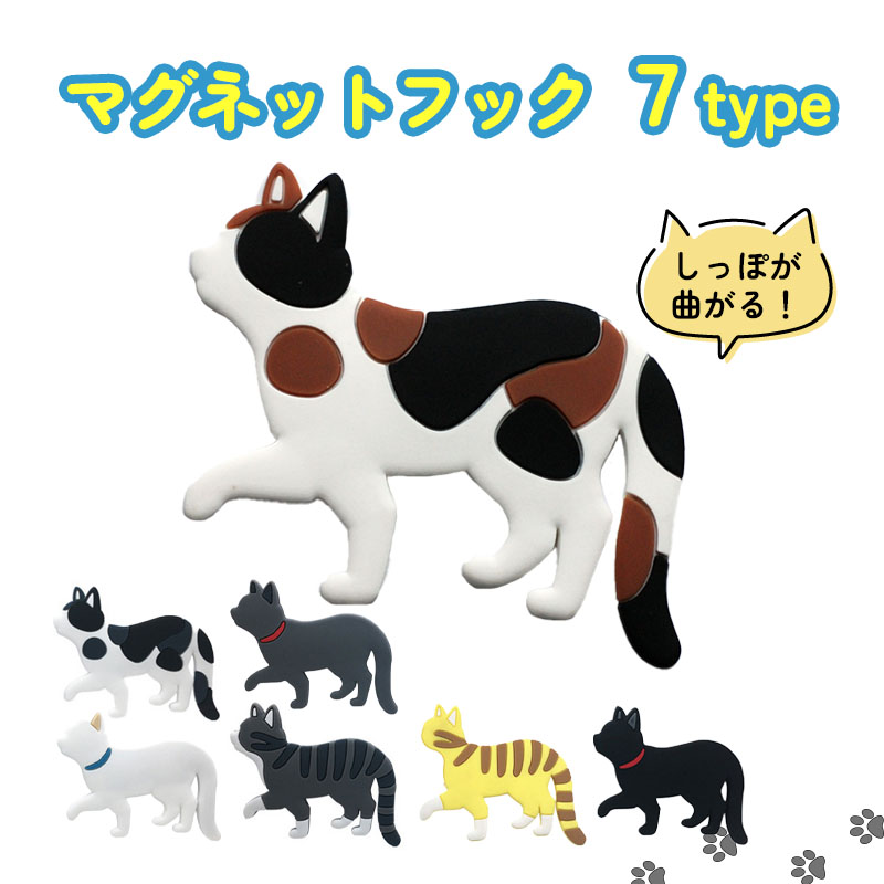 ネコの形をしたしっぽがフックになる可愛い猫のマグネットフックです。