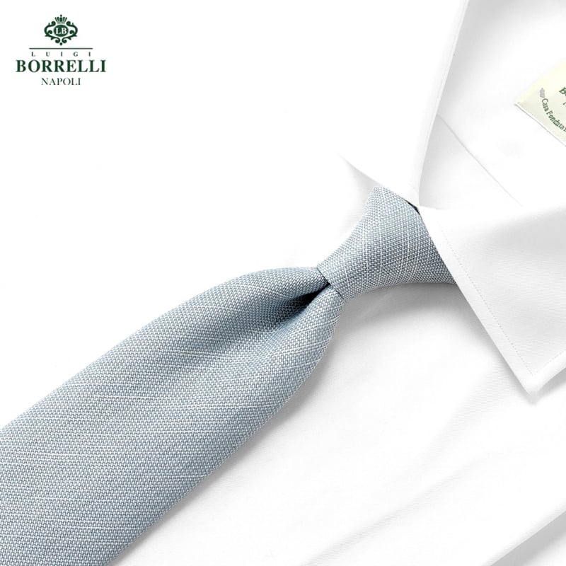 ネクタイの良し悪しを左右する“作り”ですが、ボレッリの品なので全幅の信頼が置けます。自社のシャツに合わせるためのネクタイを用意しているカミチェリアは少なくありませんが、他社に外注しているところが多いのが事実。それに対しボレッリでは、ネクタイ専門の職人を抱え、型紙の作成から生地の裁断・縫製に至るまで、すべてをイタリアの自社工場で行っています。世界中で称賛されているハンドメイドシャツと同様に、ハンドフィニッシュによって“遊び”が作られたボレッリのネクタイは、膨らみがあって締めやすく、やわらかいのに緩みません。ファッション業界関係者の間でも評判で、ネクタイはボレッリと決めている人が多いのが頷けます。