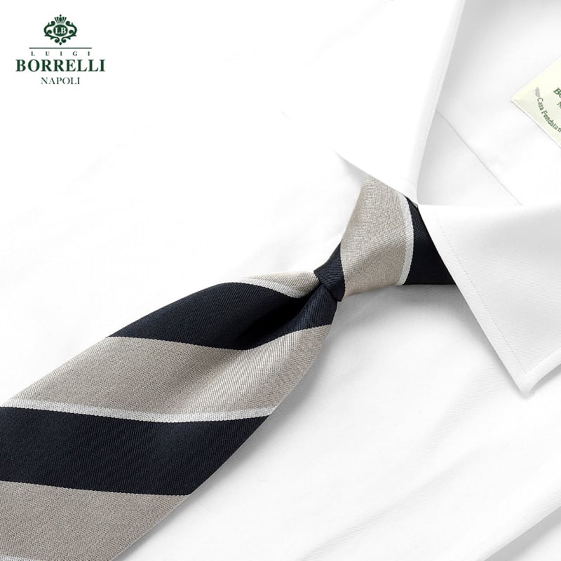 ルイジ・ボレッリのネクタイは、有名セレクトショップや百貨店のネクタイ売り場に必ずと言っていいほど並べられているシャツと並ぶブランドを代表するアイテムです。多くの人たちに愛されている理由は、「徹底したクオリティの追求(締めやすさ)」と「ナポリを感じさせる独特の色使い(独自性のある生地選び)」の2点にあります。