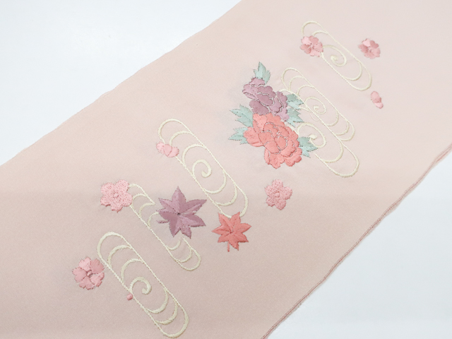 《京都一輝堂》【着物】和装小物 半衿 刺繍 観世水に華模様 未使用品 r6w-560