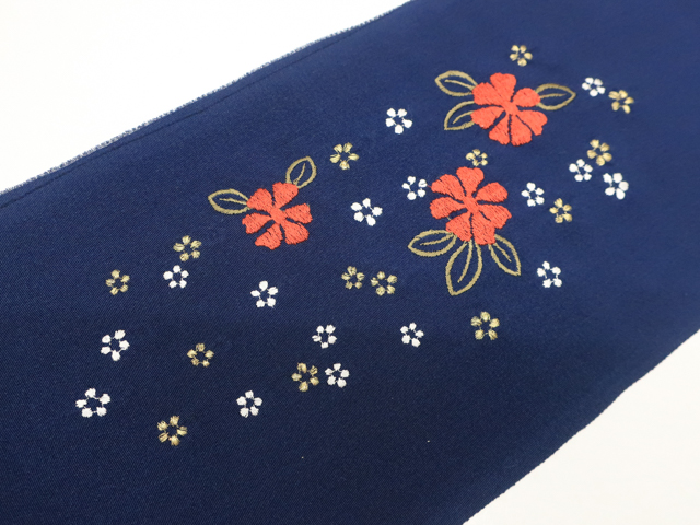 《京都一輝堂》【着物】和装小物 半衿 刺繍 花模様 未使用品 r6w-561