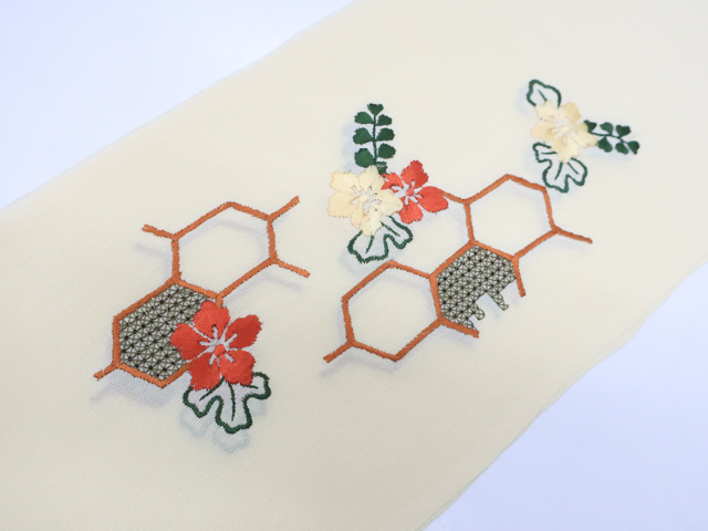 《京都一輝堂》【着物】和装小物 半衿 刺繍 汕頭刺繍 花亀甲模様 未使用品 r6w-567