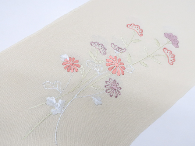 《京都一輝堂》【着物】和装小物 半衿 刺繍 松菊模様 未使用品 r6w-570
