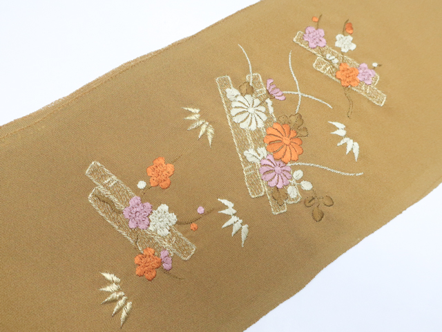《京都一輝堂》【着物】和装小物 半衿 刺繍 金糸 花筏模様 未使用品 r6w-571