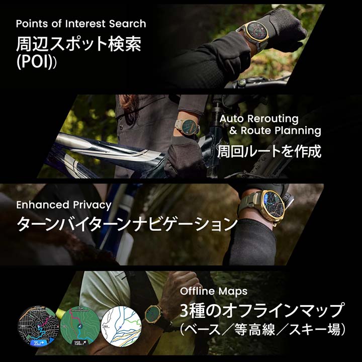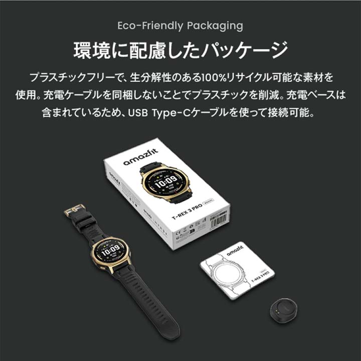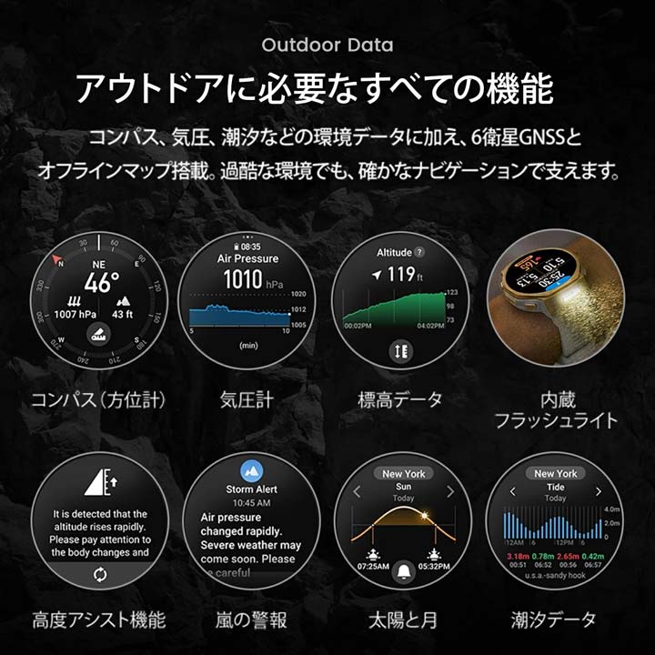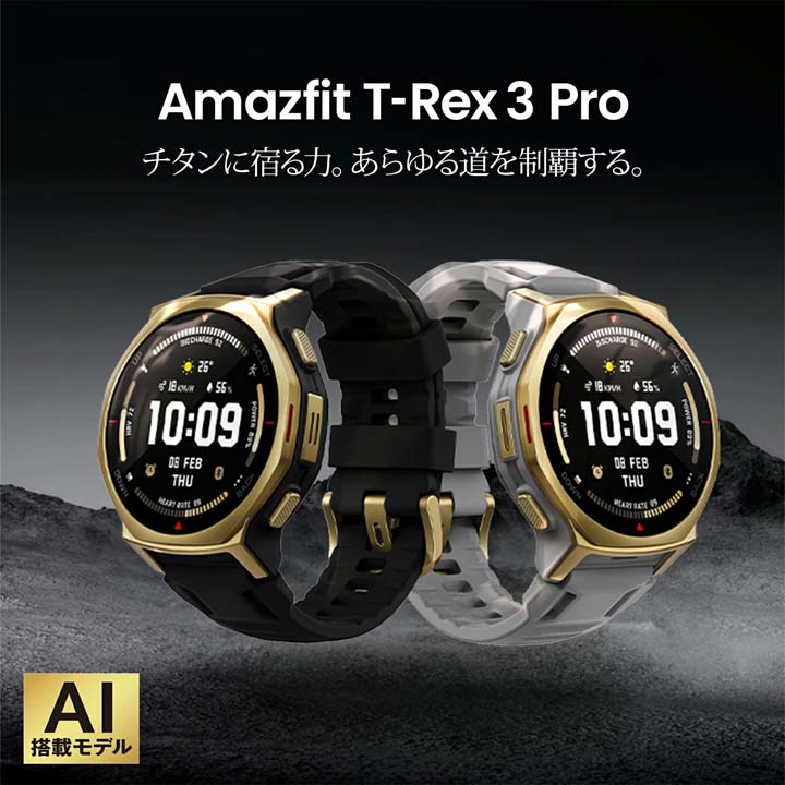 T-Rex 3 Pro は、圧倒的なタフネスと洗練されたデザインで、あらゆる挑戦をサポートします。 チタン合金フレームとサファイアガラスを採用した堅牢なボディはミリタリー規格試験に準拠し、10ATM防水性能で過酷な環境でも信頼できる耐久性を発揮。1.5インチの高精細AMOLEDディスプレイは、アウトドアでも鮮明で見やすく、マイク・スピーカー搭載により通話や音声操作にも対応します。 さらに、ロングバッテリーによる安心の駆動時間を備えたT-Rex 3 Proは、日常から冒険まで、あなたの挑戦を共にする最高のパートナーとなるでしょう。