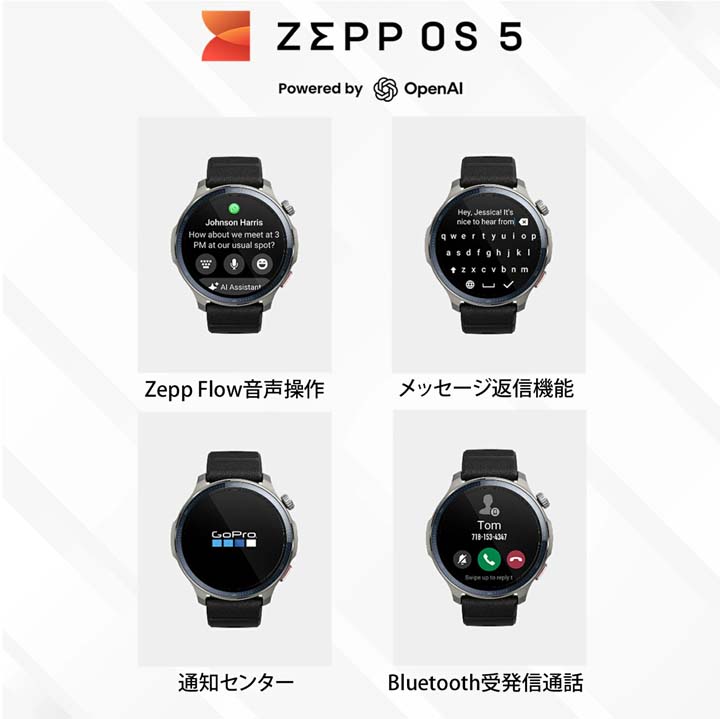 | その他機能・特徴 | ・コンパス:有 ・気圧高度計:有 ・音楽ストレージ:約26GB・音声通話:有(受発信対応)・スポーツモード:170+(自動認識/8つのスポーツ)・高度なランニングサポート:仮想ペーサー・レディネス:有・体組成測定:無・表面温度測定:有・24時間モニタリング:心拍数/血中酸素レベル/ストレスレベル・健康リマインダー:心拍数の異常/低血中酸素/高ストレスレベル/呼吸エクササイズ/座り過ぎのリマインダー・外部デバイスへの接続:有・バッテリー容量:500mAh・バッテリー持続時間:最大17日間(標準使用)・充電時間:約3時間・充電方法:マグネット式充電器・セット内容:時計本体(純正バンド含む)、専用充電器(ケーブルなし)、取扱説明書・対応デバイス:Android7.0以上、iOS15.0以上・接続:Bluetooth 5.2 BLE、Wi-Fi(2.4GHz)・搭載OS:Zepp OS 5・アプリ:Zepp アプリ※タブレット未対応 |