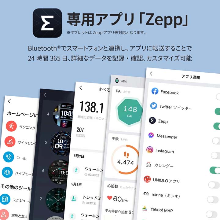 | サポートについて | スマートウォッチの特性的にAmazufitの機能説明はAmazfit カスタマーサービスセンターでご説明対応となります。 修理のご対応もAmazfit カスタマーサービスセンターにて対応となります。 お問い合わせ先:Amazfit カスタマーサービスセンター お問い合わせフォームにてお問合せください。 |