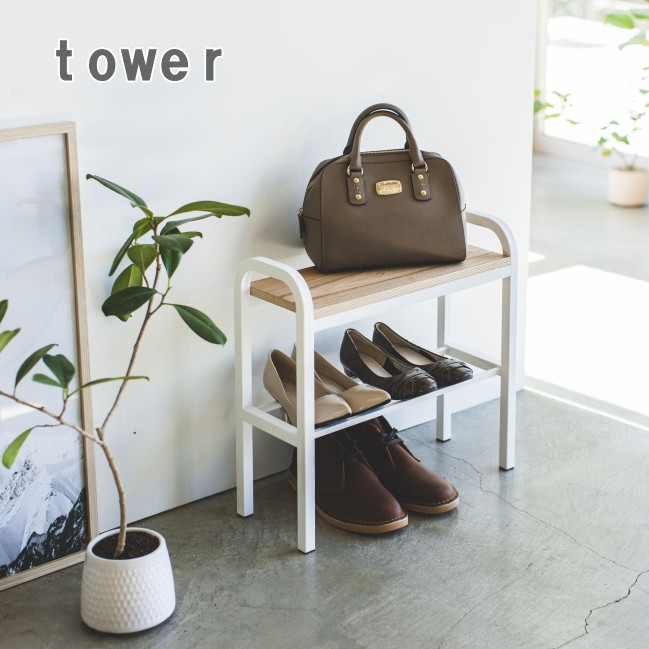 立ちやすいベンチシューズラック tower タワー ブラック ホワイト 山崎実業 玄関ベンチ シューズラック ハンドル付き 玄関 玄関収納