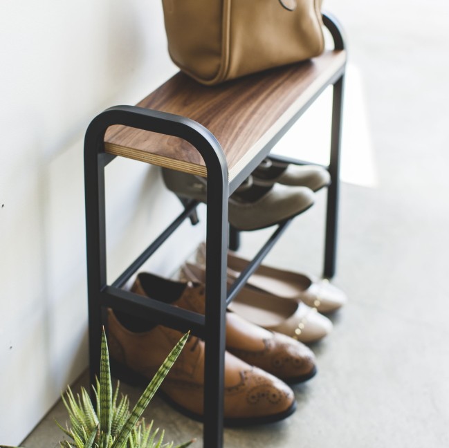 靴の脱ぎ履きをサポートしてお出かけをスムーズに。 靴も収納できる玄関ベンチ。 お出掛け前
