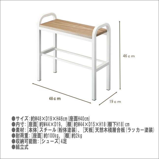 約W48×D19×H46cm(座面H40cm)内寸:[座面]約W44×D19、[棚]約W44×D15×H18(棚下H18)cm