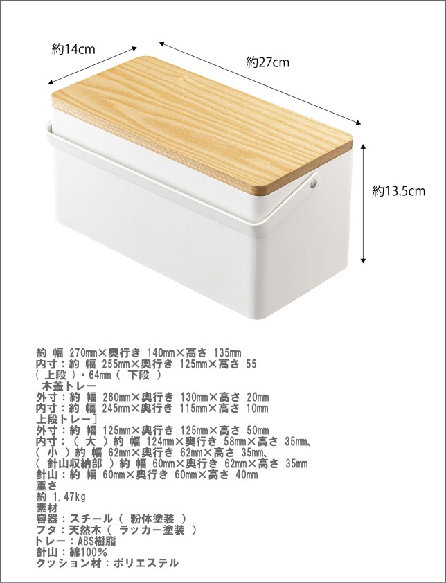 トレー:ABS樹脂 針山:綿100% クッション材:ポリエステル