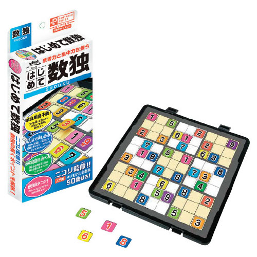 筆記用具を使わずあそべる数独を何度も挑戦できる!オリジナル問題集50 問付き。●内容/ゲーム盤、数字コマ、オリジナル問題集50問●サイズ/パッケージ:115×260×25 mm●重量/300g●材質/PP、PS、紙