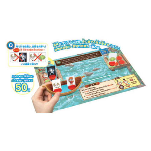 条件をクリアしながら、舟に乗せる順を考えるパズルで、論理的思考力、数学的思考力を養おう。●内容/舟1台、駒台小15個、駒台大3個、駒カード小15枚、駒カード大3枚、舟シート1枚、問題集1冊、解答集1冊●サイズ/パッケージ:320×230×50mm●重量/約450g●材質/PP、紙