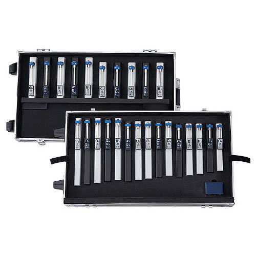 ●サイズ/ケース:38×13.5×67.5cm●重量/11.4kg●本体音名表示/G4 〜 G6●材質/本体:アルミ合金ヘッド:ゴム●付属品/ケース、六角棒スパナ×3、ヘッドフェルト×5