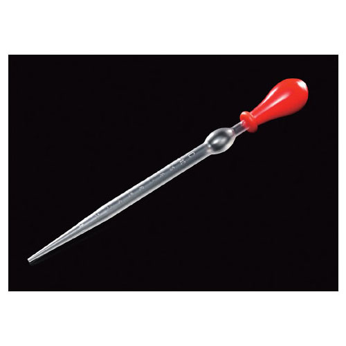 赤ゴムキャップ付きのプラスチック製コマゴメピペット。落としても割れないため、安全かつ手軽に使えます。