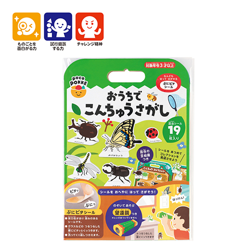 なんどもはってはがせるぷにピタシールをおへやにはってさがそう <br><br>●内容/ボード、手作り望遠鏡、昆虫シール×19<br>●材質/本体・望遠鏡:紙・PP、シール:TPE・PET