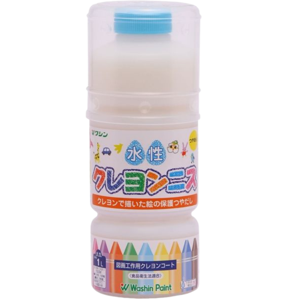 クレヨン画のべたつきや色写りを抑える専用ニスです。。●メーカー名/和信ペイント