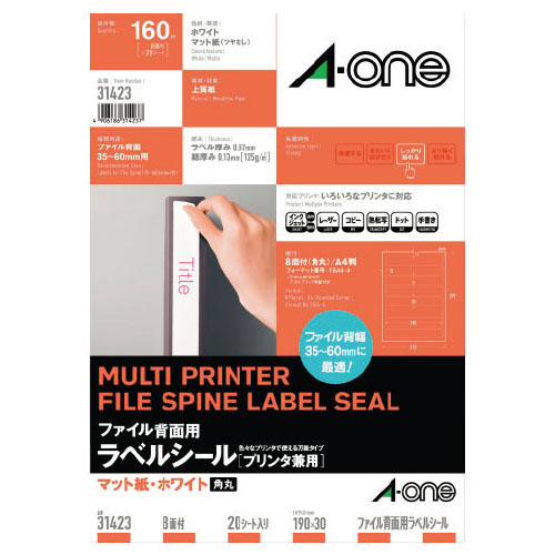 マルチプリンタラベル ファイル背面用(20枚) 5面[31421] エーワン