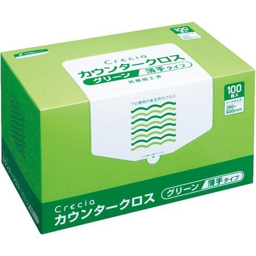 ふきん キッチンクロス カウンタークロス 薄手(100枚) グリーン クレシア