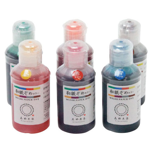 ●内容/6色(黄、赤、青、緑、橙、茶)●内容量/各50ml●使用目安/50ml:半紙50 〜 78枚浸し染め