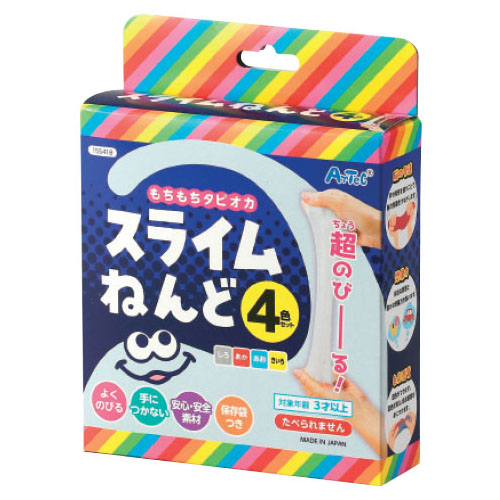 やわらかくて、よくのびるタピオカでできたねんど。●内容/き、しろ、あか、あお●サイズ/パッケージ:120×160×34mm●重量/1個:30g●材質/タピオカ粉、水、塩分、食用色素、保存料●付属品/保存袋×2