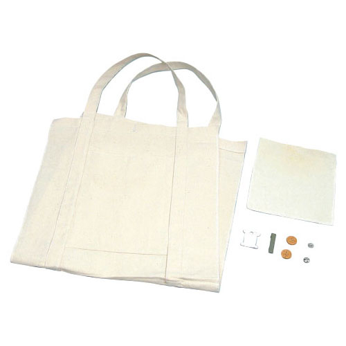 半縫製済なので2 〜 4 時間でマチ付き帆布バッグが完成します。●内容/帆布バッグ本体[2辺ロックミシン加工済](400×830mm)×1、ポケット[3辺ロックミシン加工済](225×270mm)×1、四つ穴ボタン(φ20mm)×2、スナップボタン(φ12mm)×1、縫い針(φ1×45mm)×1、縫い糸(5m)×1●完成サイズ/390×400mm●材質/帆布