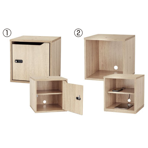 ●サイズ/(1)(2)W400×D400×H400mm (3)W800×D400×H400mm(4)W400×D400×H800mm(5)W800×D400×H800mm、内寸:(1)W362×D367×H363mm (2)W362×D385×H363mm (3)W372×D385×H363mm(4)W363×D367×H760mm(5)W371×D367×H760mm●重量/(1)約10.3kg(2)約8.8kg(3)16.8kg(4)約16.5?(5)約29.7?●材質/メラミン加工パーティクルボード●ダイヤル錠3桁●付属品/専用工具、穴隠しシール、連結ボルト、ナット、ワッシャー、木ダボ、鍵:(1)(4)(5)2本、棚板:(1)(2)(4)1枚(3)(5)2枚●機能/棚板:奥行2段階・高さ3段階調整●必要工具/プラスドライバー