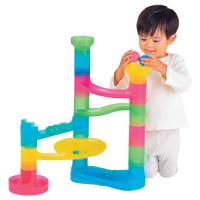 2歳でも自分でコースが作れるボール転がし装置。●内容/パーツ×11、ボール×3、作例集×1●サイズ/パッケージ:W380×D300×H275mm●重量/1590g●材質/パーツ:ABS、ボール:PP、ベル:鉄、作例集:紙