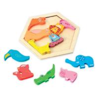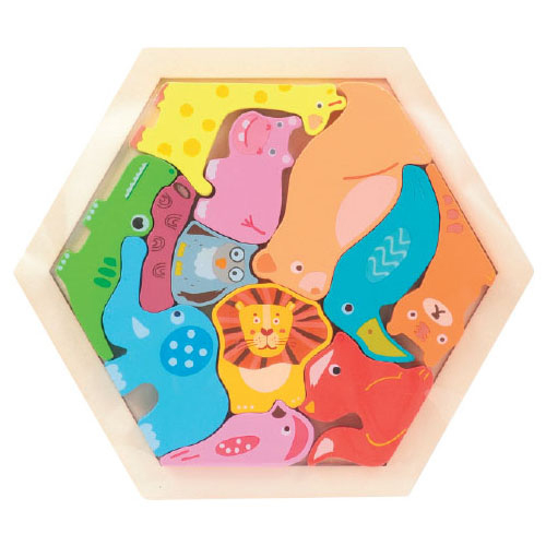 かわいいデザインの木製六角形パズル。●内容/フレーム×1、パーツ×12ピース●サイズ/190×160×11mm●重量/132g●材質/MDF