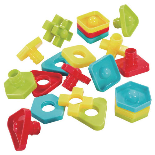 ひねって、ねじって指先トレーニング。●内容/ナット×12、ボルト×12●サイズ/ナット:6.8×6.2×1.2cm、ボルト:5.5×5.5×4.4cm●重量/270g●材質/PE
