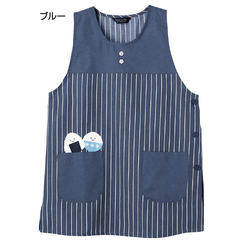 ポケットからおにぎりとご飯がひょっこり!落ち着いた色味のストライプ柄です。<br><br>●サイズ/丈:80cm、幅:56cm<br>●素材/ポリエステル90%、綿5%、レーヨン5%<br>●ボタン/左脇