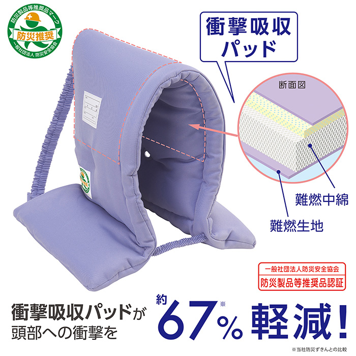 防災ずきん 衝撃吸収パッド入り パープル デビカ 子ども用 防災推奨 難燃 燃えにくい