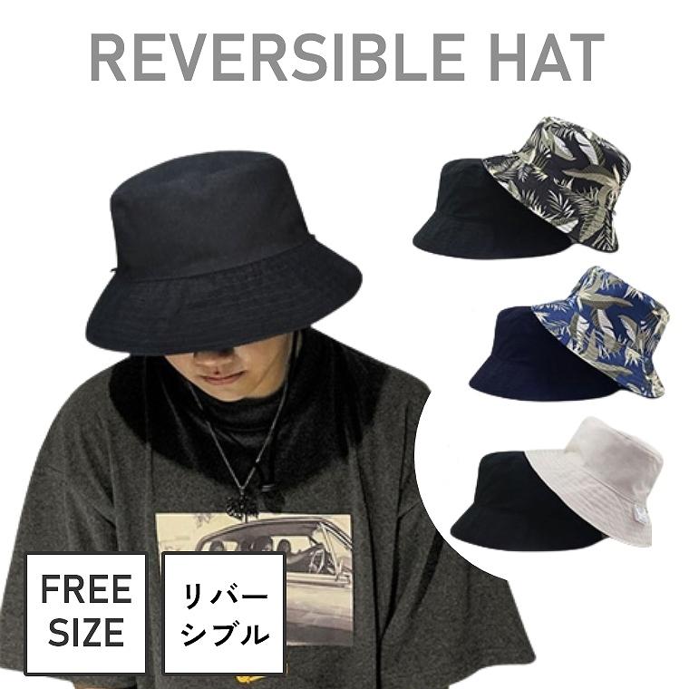 ハット メンズ リバーシブル レディース 帽子 春夏 アウトドア 無地 総柄 ブラック 黒 ネイビー ベージュ カジュアル モノトーン ワントーン