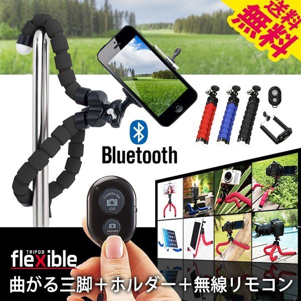 三脚 Bluetooth シャッター付き 自撮り スマホ カメラ iPhone android くねくね三脚 無線リモコンセット