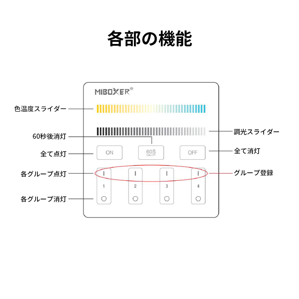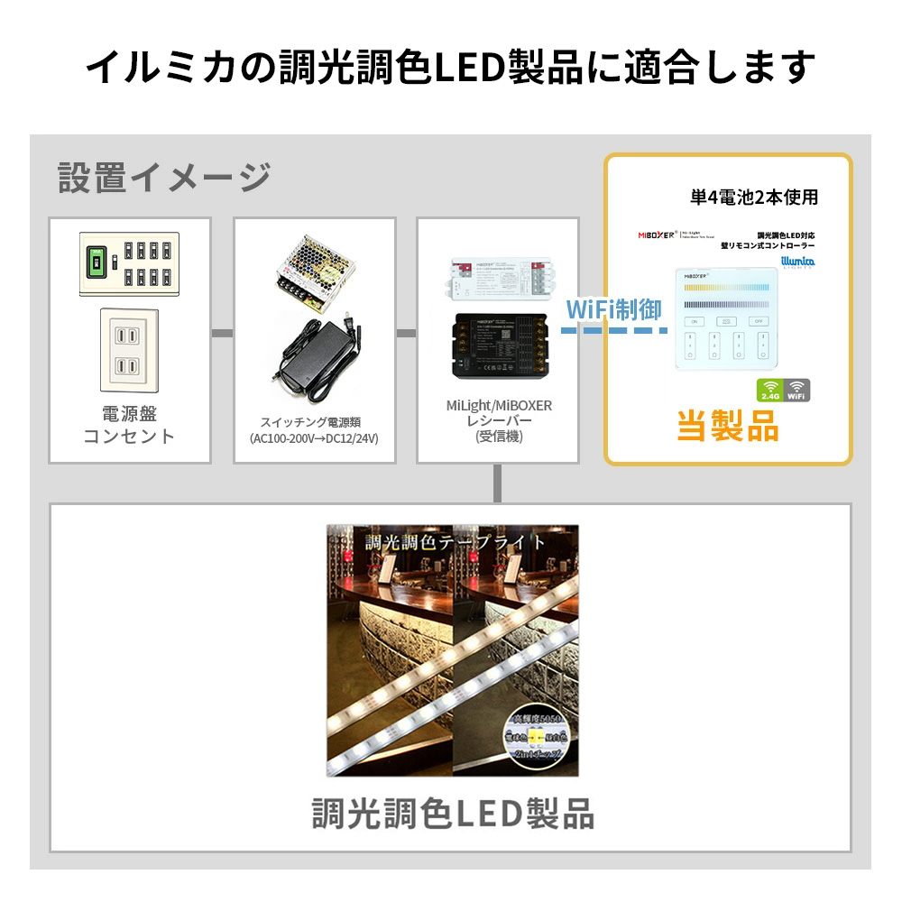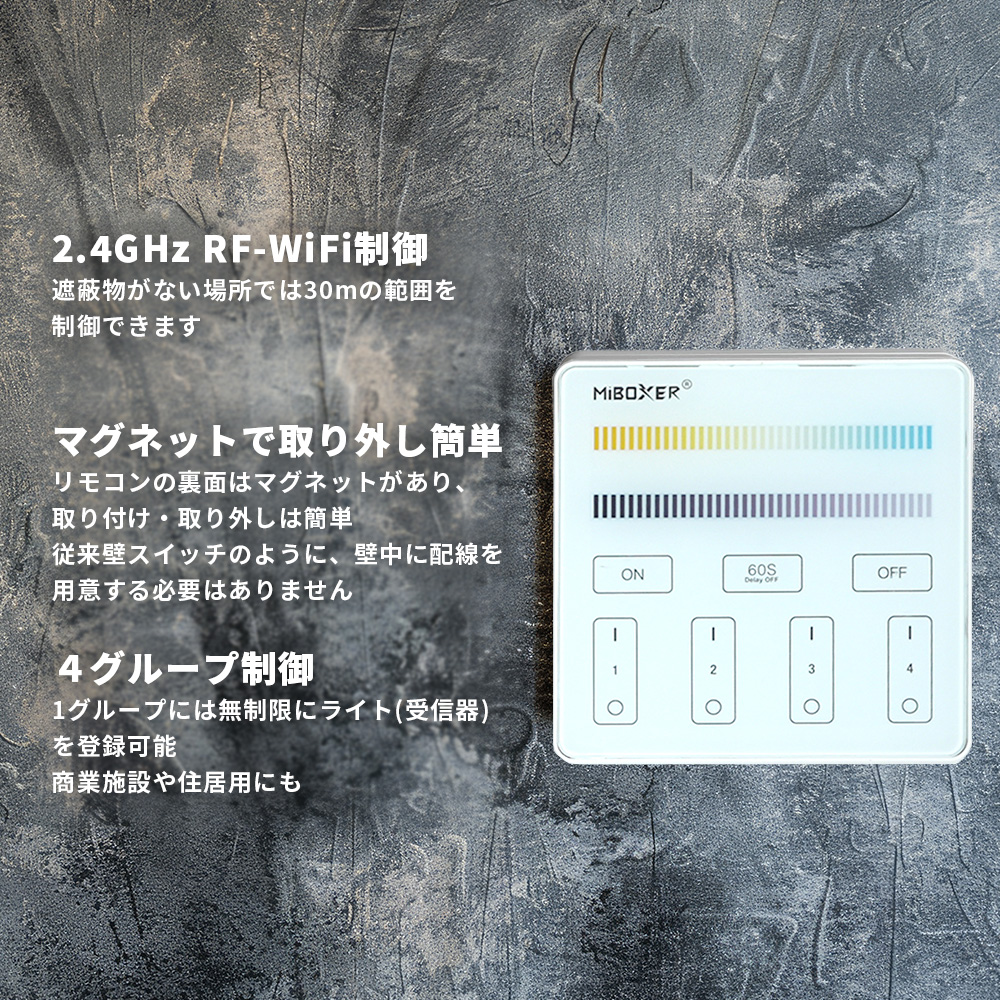 調光調色 壁リモコン式 コントローラー MiLight IT-M020/ 4グループ制御 / 電池式 / miboxer B2 調光可能