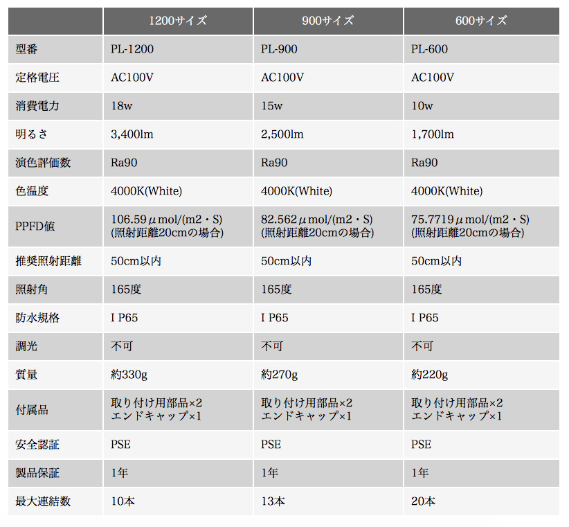 ・植物ライトの推奨使用環境温度は30度前後です。