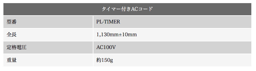 ・タイマー付ACコードはタイマー機能に最大10分程度のずれが生じる場合がございます。