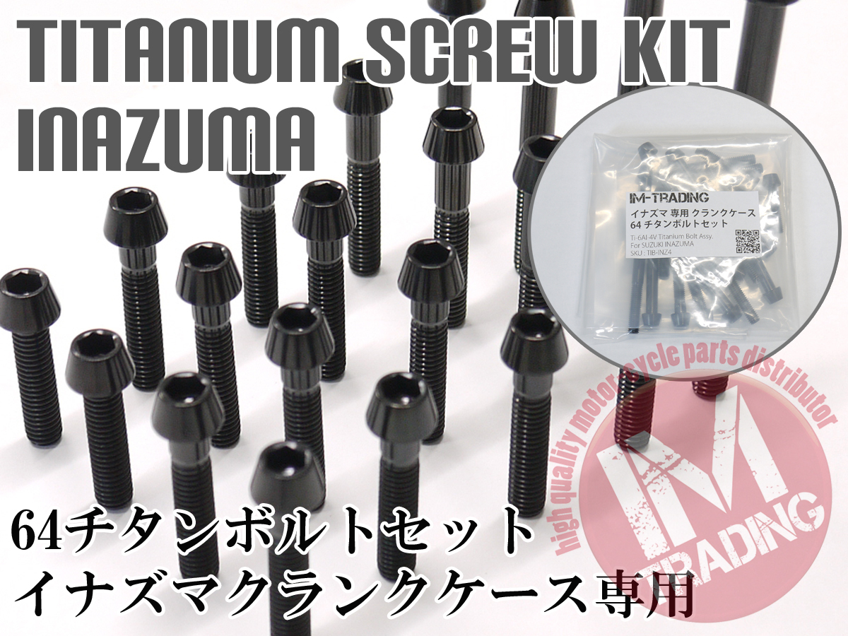 イナズマ400専用 64チタン製 クランクケースカバーボルトセット 29本 テーパーキャップ ブラック 黒 Ti-6Al-4V エンジンカバーボルト